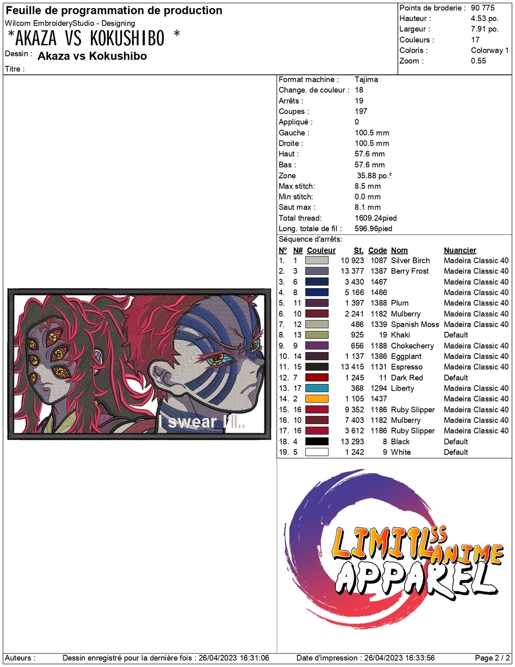 Akaza vs Kokushibo from Demon slayer Anime Embroidery Design File.